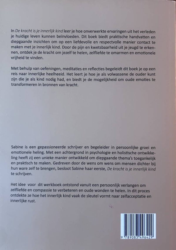 In dit boek leer je hoe onverwerkte ervaringen uit het verleden je huidige leven kunnen beïnvloeden. Dit boek biedt praktische handvatten en diepgaande inzichten om op een liefdevolle en respectvolle manier contact te maken met je innerlijk kind. Door de pijn en kwetsbaarheid uit je jeugd te erkennen, ontdek je de kracht om jezelf te helen, zelfliefde te omarmen en emotionele vrijheid te vinden.